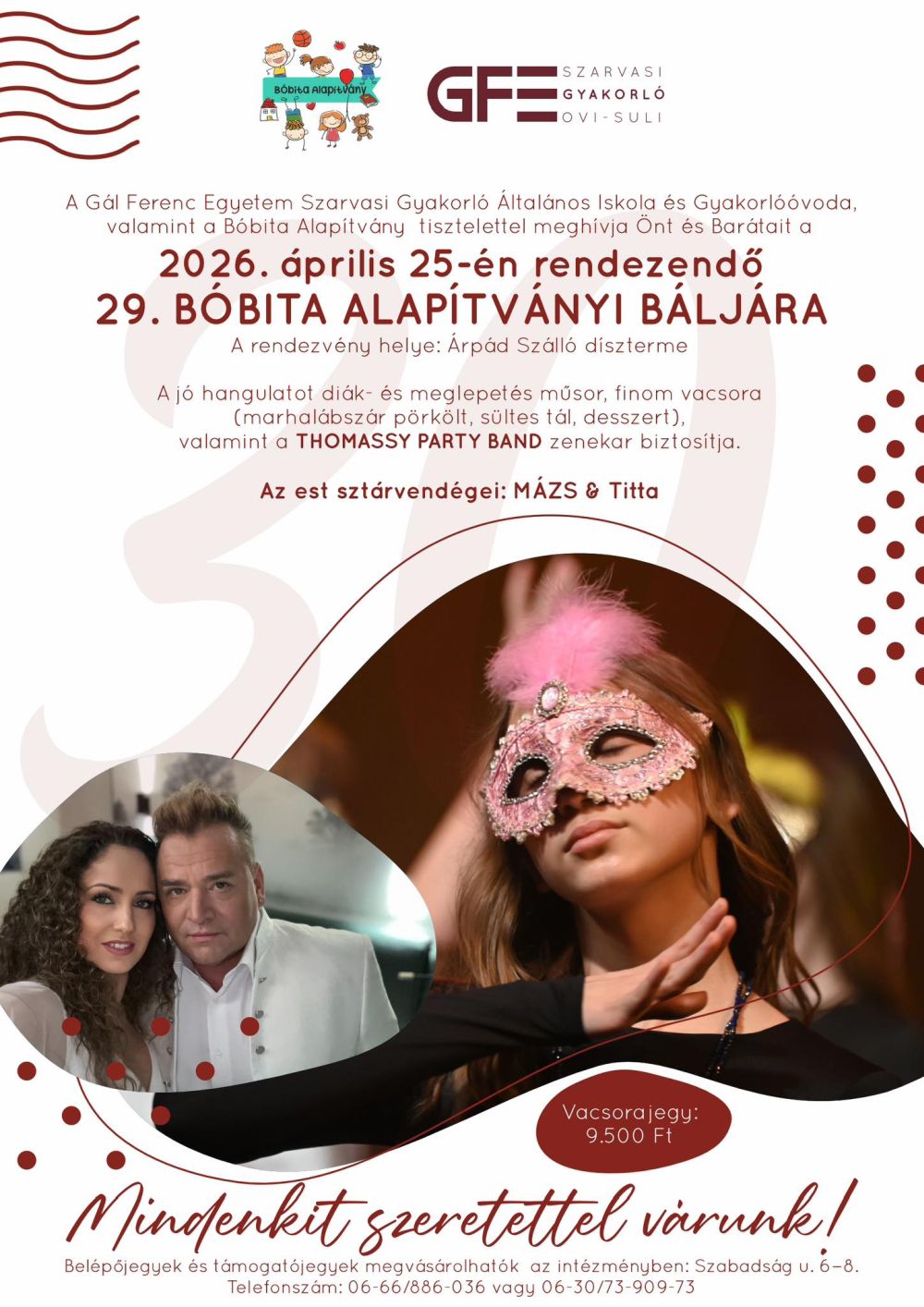 2026szombat25április19:0029. Bóbita Alapítványi Bál19:00 TelepülésHétvége,SzarvasÁrpád Szálló RendezvényteremKategóriaBuli