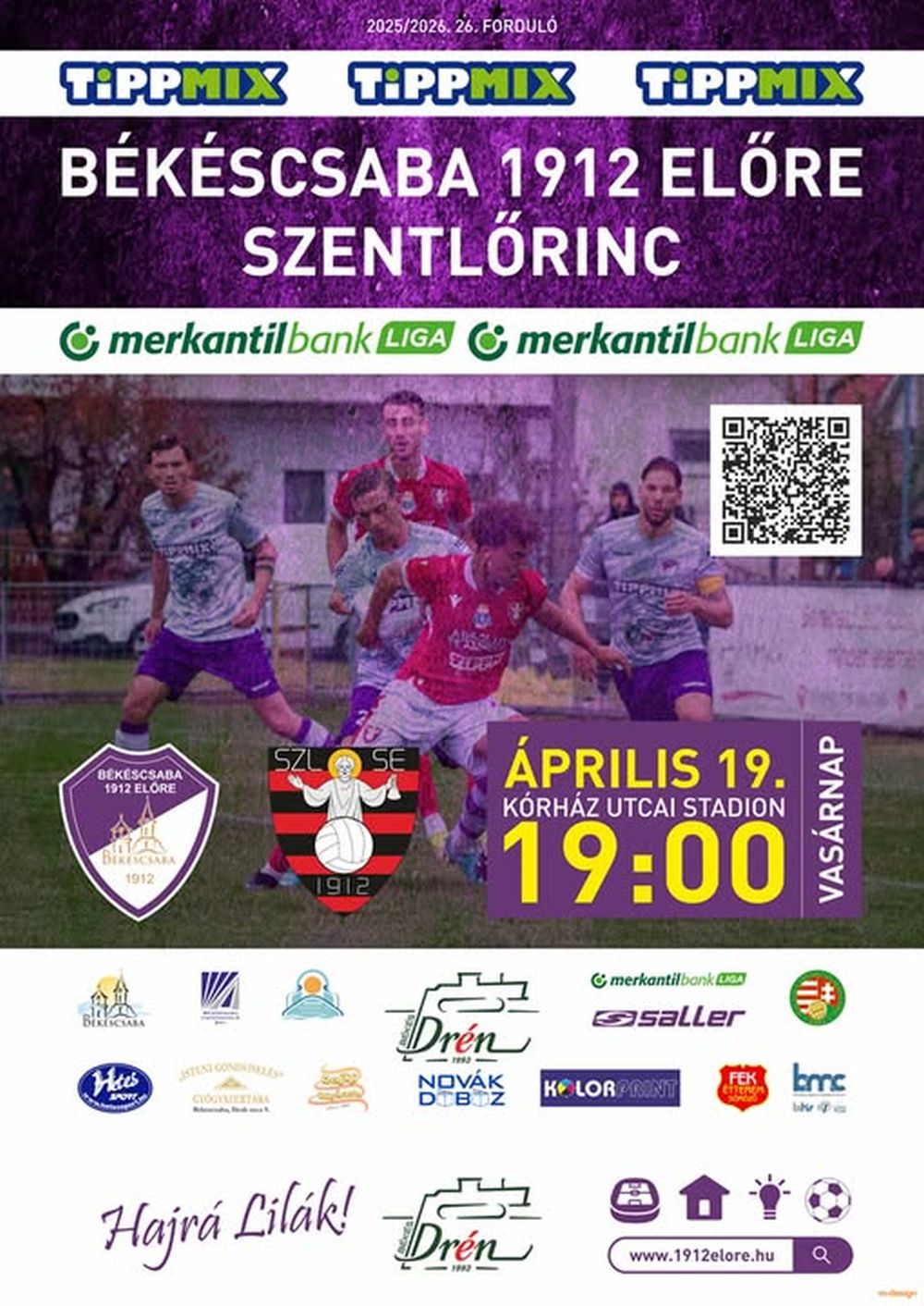 2026vasárnap19április19:00Békéscsaba 1912 Előre - Szentlőrinc19:00 TelepülésBékéscsaba,HétvégeKórház Utcai StadionKategóriaSport