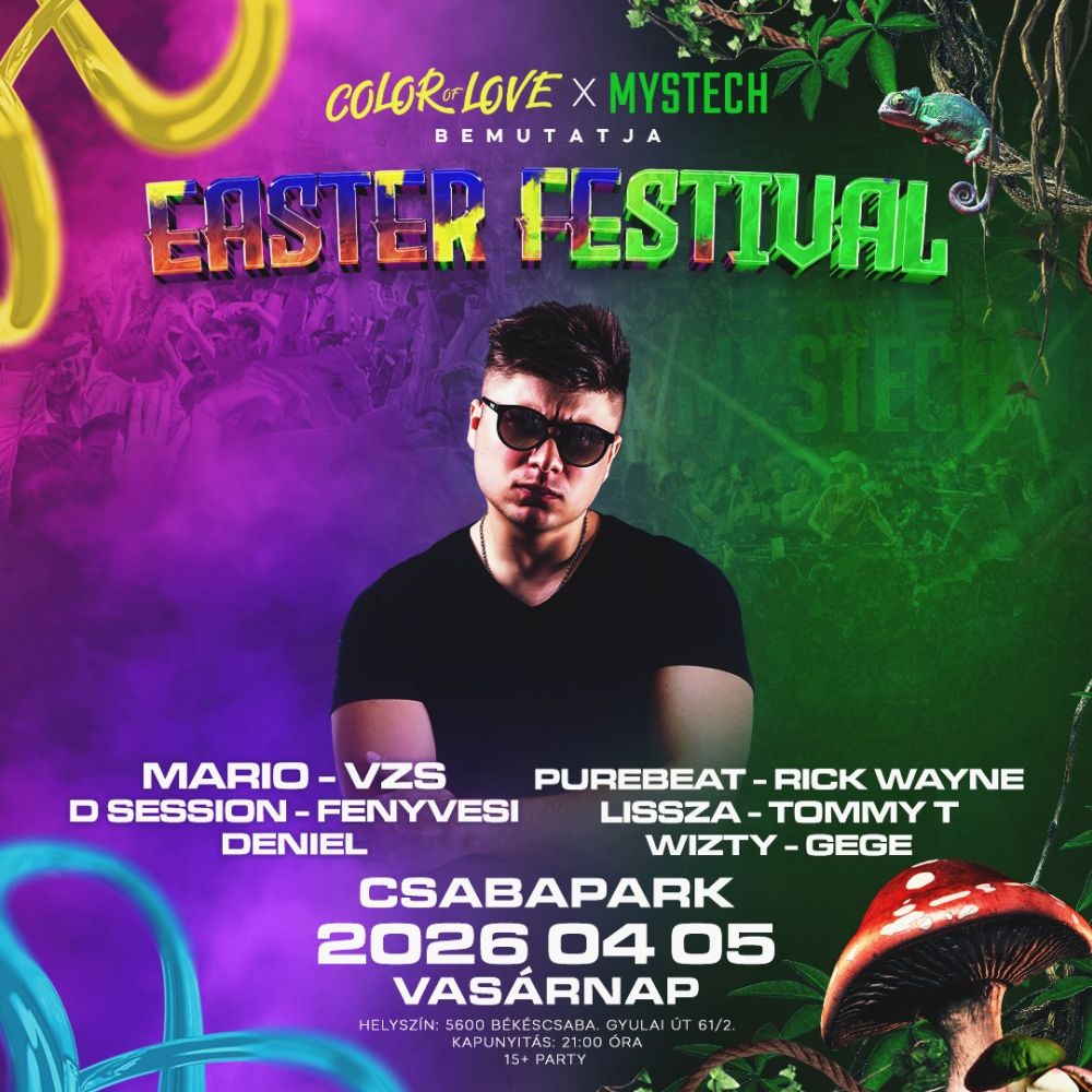 Húsvétvasárnap a Color of Love x Mystech csapata közösen bontja le a Csabaparkot! 🏰 10 fellépő, és egy olyan éjszaka, amiről még hetekig beszélni fogsz. 💣