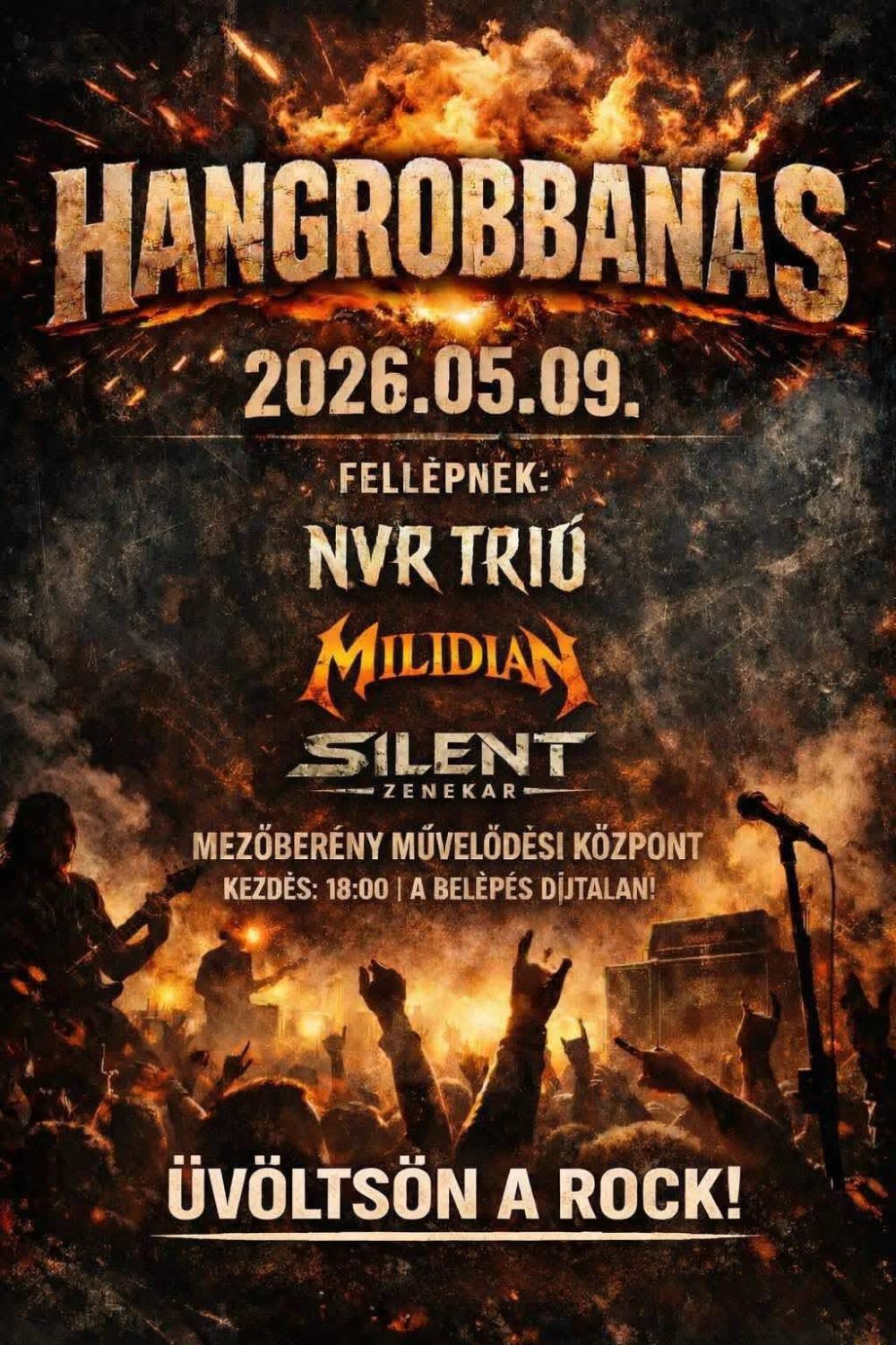 2026szombat09május18:00Hangrobbanás az Orlai házbanÜvöltsön a Rock!18:00 TelepülésHétvége,MezőberényOrlai házKategóriaKoncert