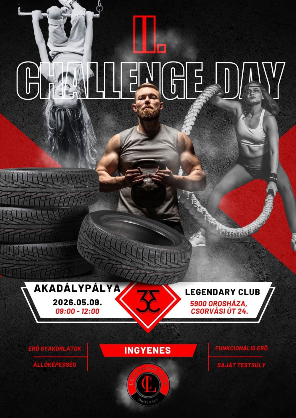 Gyere el a Legendary Club akadálypályás eseményére, ahol minden adott ahhoz, hogy átlépd a saját határaidat: gumik, kötelek, saját testsúlyos gyakorlatok, erő- és állóképességi feladatok!