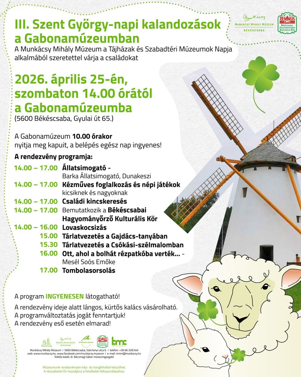 👉 2026. április 25-én, szombaton ismét vidám hangulatú családi programra van kilátás a Gabonamúzeumban, ahol 14.00-tól mindenkit szeretettel várunk a Szent György-napi kalandozások elnevezésű rendezvényünkre. 🫰
