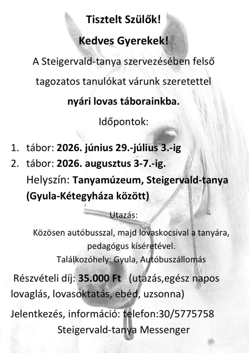 2026hétfő29júniusEgész napLovastábor a Steigervald-tanyán(Egész nap: hétfő) TelepülésGyulaSteigervald TanyaKategóriaGyerekeknek,Sport,Tábor