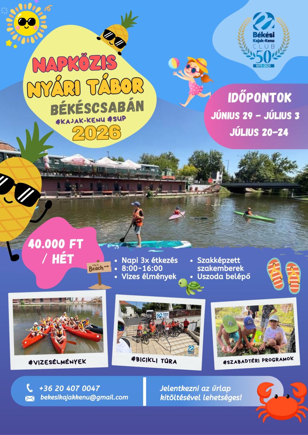 🌊🚣♂️ Békéscsabán is napközis tábor 2026 🚴♀️☀️