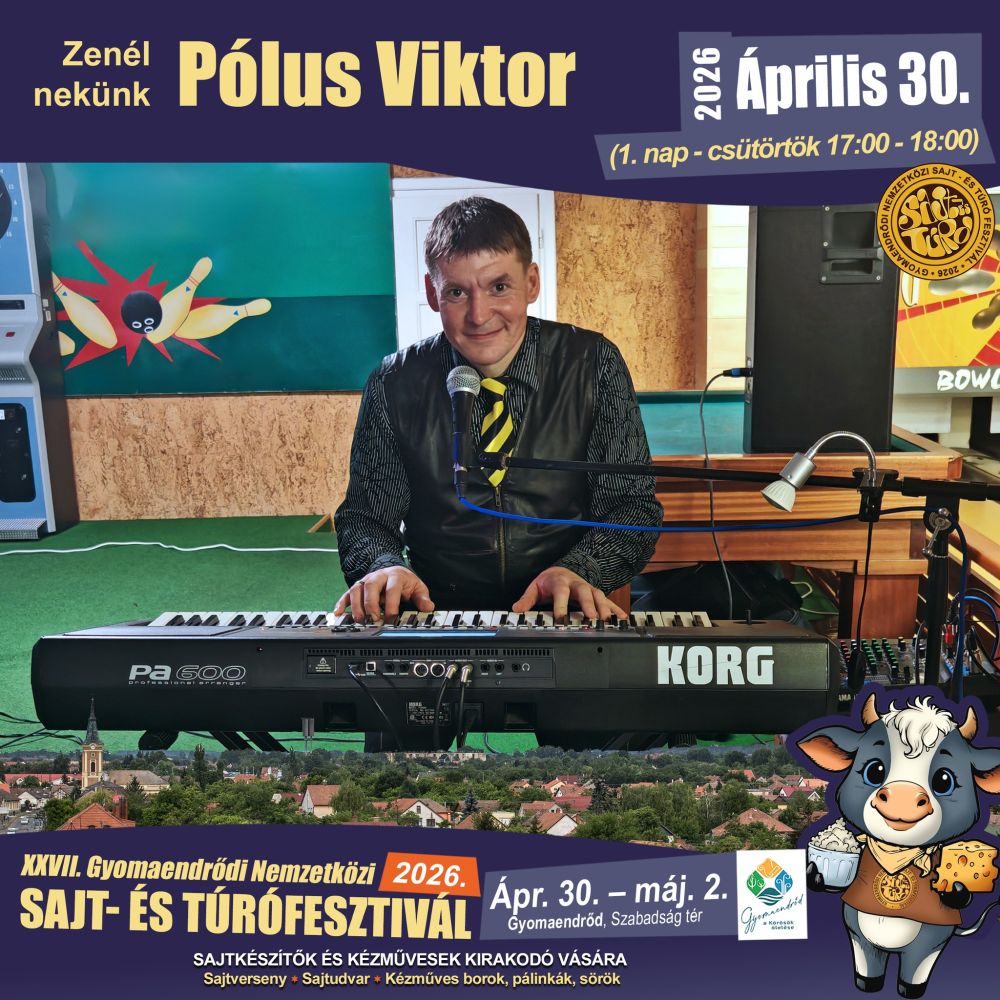 A Gyomaendrődi Sajt- és Túrófesztivál színpadán április 30.-án Pólus Viktor gondoskodik a hangulatról!