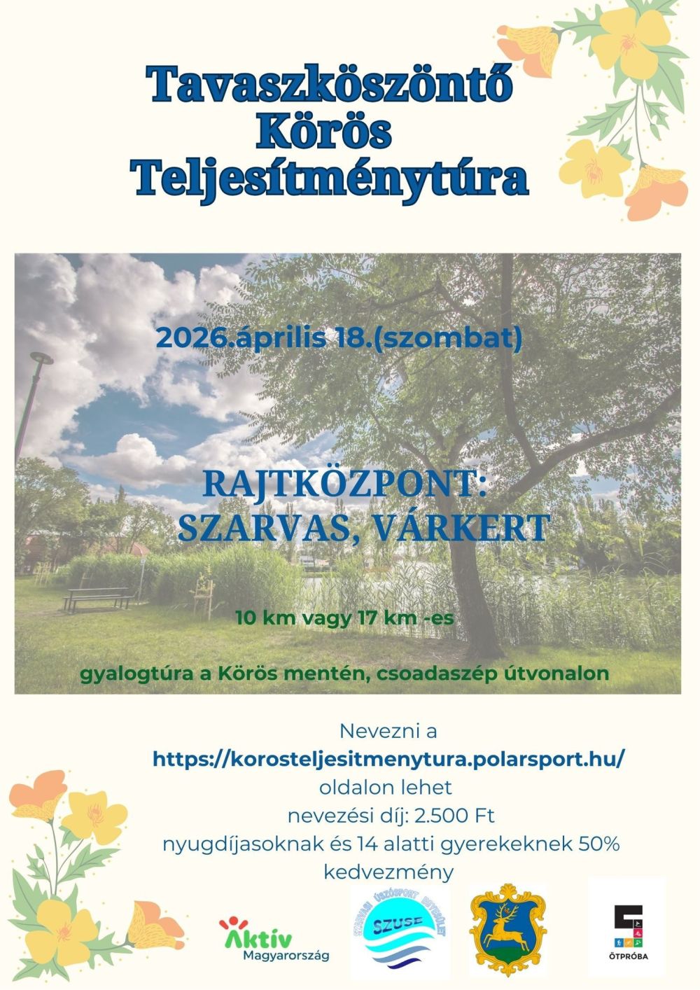 Tavaszköszöntő Körös Teljesítménytúra Szarvas, Várkert Április 18. szombat Nevezés
