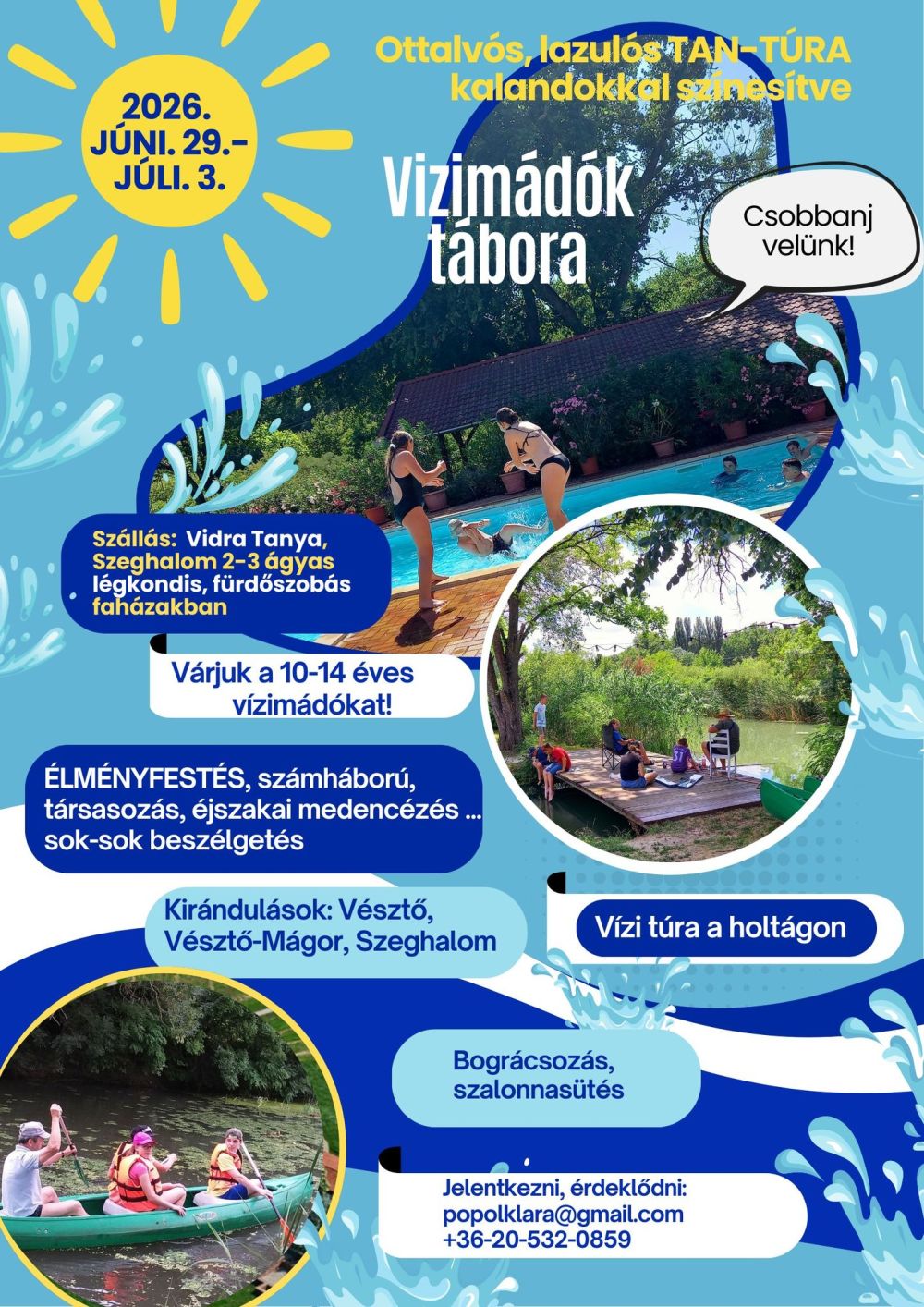 🌊🌊Vízimádók 🌞nyári tábora 2026 Figyelem, elindult a jelentkezés erre a „nagyonimádom”😍, „biztosmegyekújra” 🤩táborunkba! ⏰Ideje: 2026. június 29-től júli. 3-ig (5 nap 4 éjszaka) hétfőtől péntekig 🛌Szállás: SZEGHALOM, a 🌊🌊medencés VIDRA TANYA 💥légkondis,