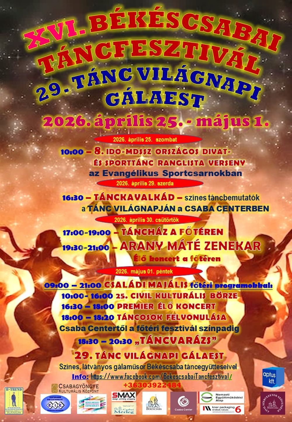Ebben az évben is megrendezésre kerül Békéscsaba egyik legnagyobb kulturális fesztiválja a BÉKÉSCSABAI TÁNCFESZTIVÁL és a 29. TÁNCVILÁGNAPI GÁLAEST.