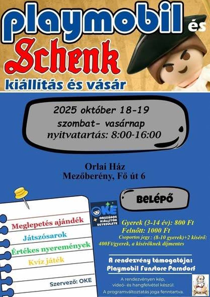 2025. október 18-19. szombat – vasárnap 8.00 – 16.00 -ig az Orlai házban ( Mezőberény, Fő út 6.) Playmobil és Schenk kiállítás és vásár!