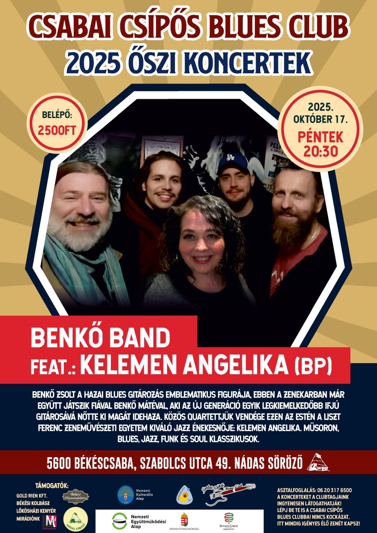Benkő Zsolt a hazai blues gitározás emblematikus figurája ebben a zenekarban már együtt játszik fiával, Benkő Mátéval, aki az új generáció egyik legkiemelkedőbb ifjú gitárosává nőtte ki magát! Közös quartettjük vendége ezen a különleges estén A Liszt Ferenc Zeneművészeti Egyetem kiváló jazz énekesnője: Kelemen Angelika.