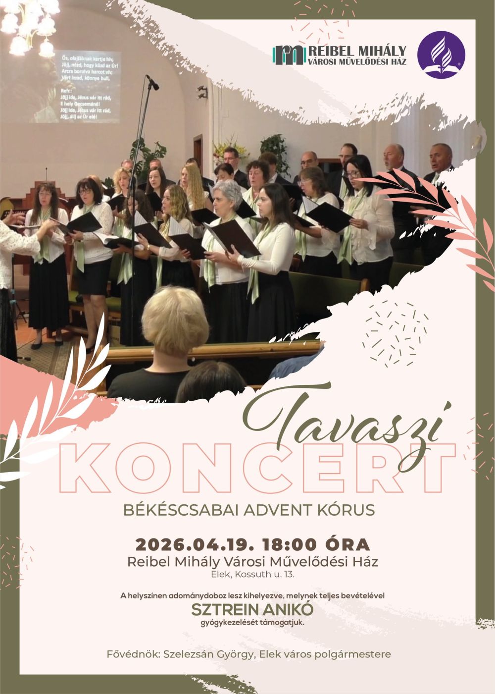 A Reibel Mihály Városi Művelődési Házban ” Tavaszi jótékonysági koncert” – együtt egy nemes célért! A Békéscsabai Advent Kórus idén is szeretettel hív és vár mindenkit egy különleges, szívet melengető estére. Ez