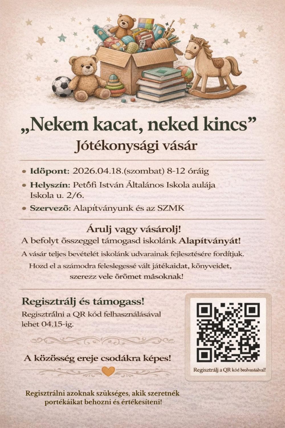 A Alapítvány a Kondorosi Általános Iskolásokért és a Kondorosi Petőfi István Általános Iskola Szülői Munkaközössége szeretettel hív és vár minden jószívű érdeklődőt egy különleges, megható hangulatú jótékonysági vásárra. 🤝✨